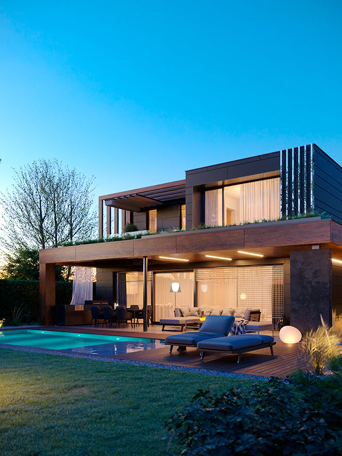 Házainkat otthonautomatikai rendszerrel szereljük fel, amellyel a napjainkban elérhető összes smart home funkció megvalósítható.